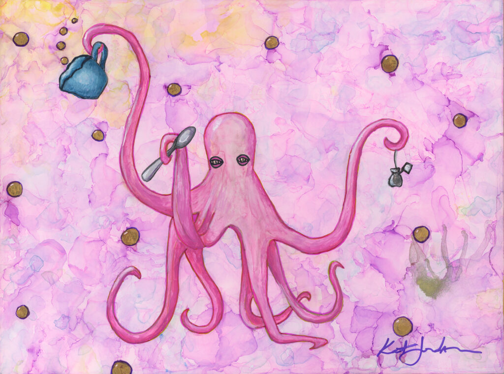Eventually, Kat corrected her missteps, righted some wrongs, picked up her brushes again, and has been painting ever since. No residencies, no fellowships, no glossy catalogues—just some good art supplies and a stubborn refusal to quit. Experience has taught her many things—chief among them, that the things which bring us back to ourselves are worth holding onto. More than anything, Kat hopes her work reminds others to pick up their own brushes—whatever form they take—and create things that make them feel alive.